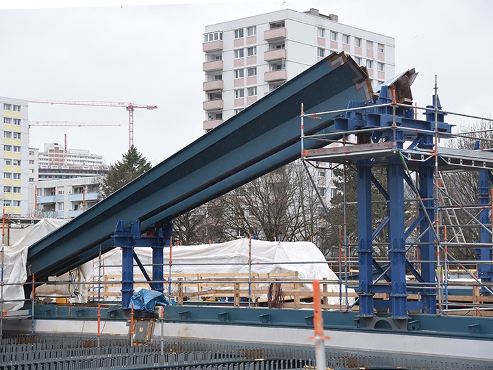 Ein 500-Tonnen-Kran hob die Träger an Ort und Stelle.
