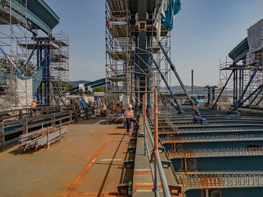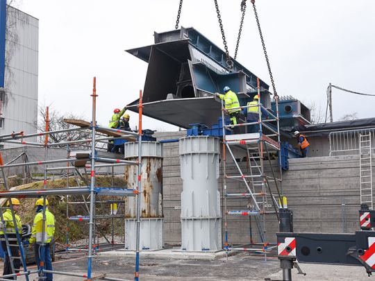 Die Tragwerke sind 15 Meter hoch und bestehen aus bis zu 60 Tonnen schweren Einzelelementen.