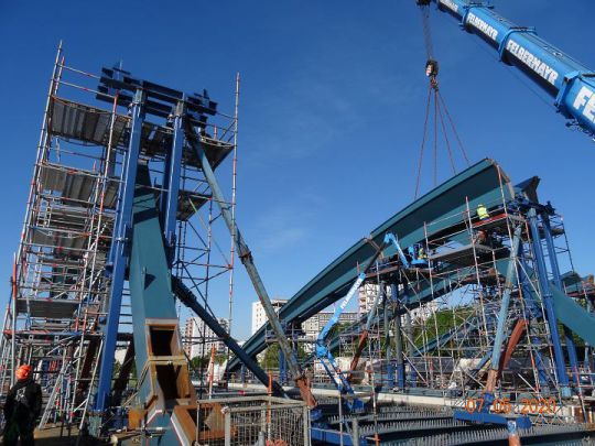 Die beiden "wasserseitigen" Brückenbögen werden sukzessive zusammengebaut.