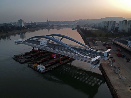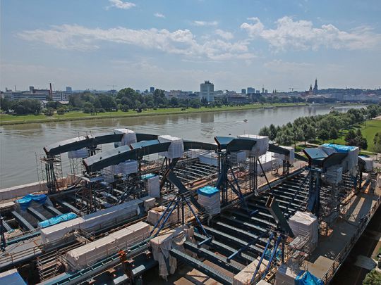 Die Brückenbögen sind bald bereit fürs Einschwimmen.