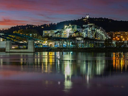 Deutlich sind die Konturen des "Landträgers" in Urfahr zu sehen.
