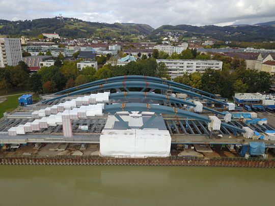 Die Stahlkonstruktion der Neue Donaubrücke Linz besteht aus rund 300 einzelnen Stahlbauteilen mit einem Einzelgewicht von bis zu 85 Tonnen. Im Herbst und Winter werden die noch fehlenden Stahlelemente für die Komplettierung der Tragewerke eingebaut und Korrosionsschutzarbeiten vorgenommen. Die Stahlbauarbeiten sollen bis November abgeschlossen werden. Nach Abschluss der Korrosionsschutzarbeiten steht dem Einschwimmen der beiden am Vormontageplatz vormontierten Tragwerke im Frühjahr 2021 nichts mehr im Weg.
