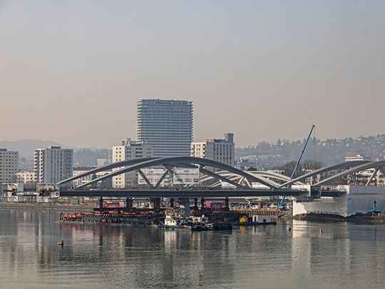 Dieses Bild lässt bereits jetzt erkennen, dass die Neue Donaubrücke zu einer städtebaulichen Dominante wird.