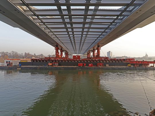 Spektakuläres Einschwimmen des mittleren Brückenbogens P2.